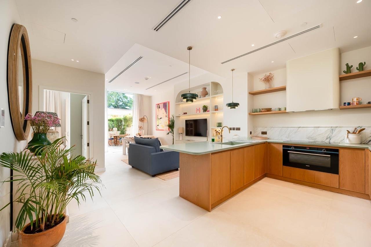 Inside, the apartment is designed for slow mornings and shared moments: a bright living area, an open kitchen and large windows that invite natural light throughout the day.